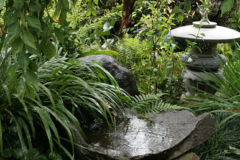 松山市の 中心部にありながら、どこか里山にいるような静寂の空間。野鳥の囀りと心地よい水の音。
